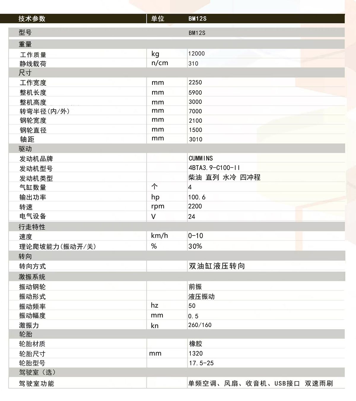 • 新款12噸前鋼后輪胎座駕壓路機(jī)BM12S