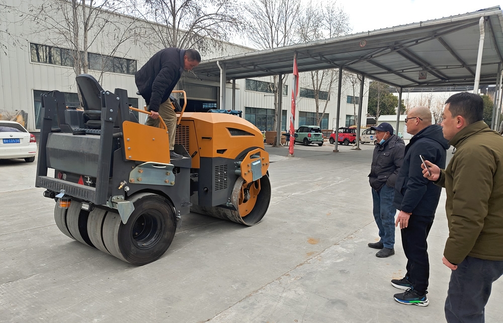 2025年2月6日新年開工第一天,國內(nèi)客戶一行3人來我廠參觀考察BM5000前鋼輪后膠輪小型壓路機,在工作人員的陪同下,參觀了我廠生產(chǎn)車間與展廳并試駕小型壓路機,詳細向業(yè)務(wù)人員了解機器的配置與參數(shù),對我廠產(chǎn)品十分滿意,當場決定下單購買